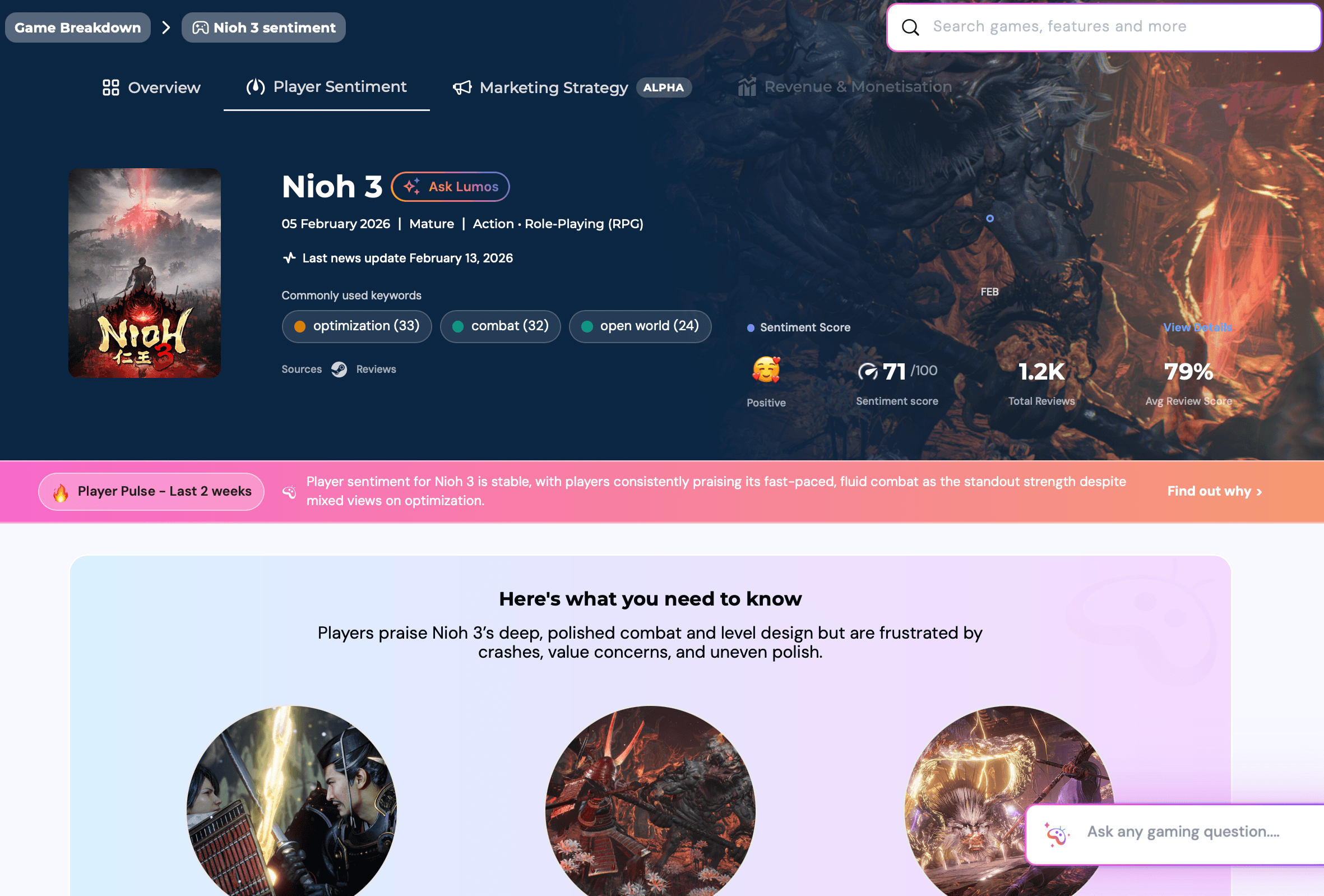 For leadership, Lumos player sentiment feature is more than a fun dashboard. It's the canary in the coal mine.