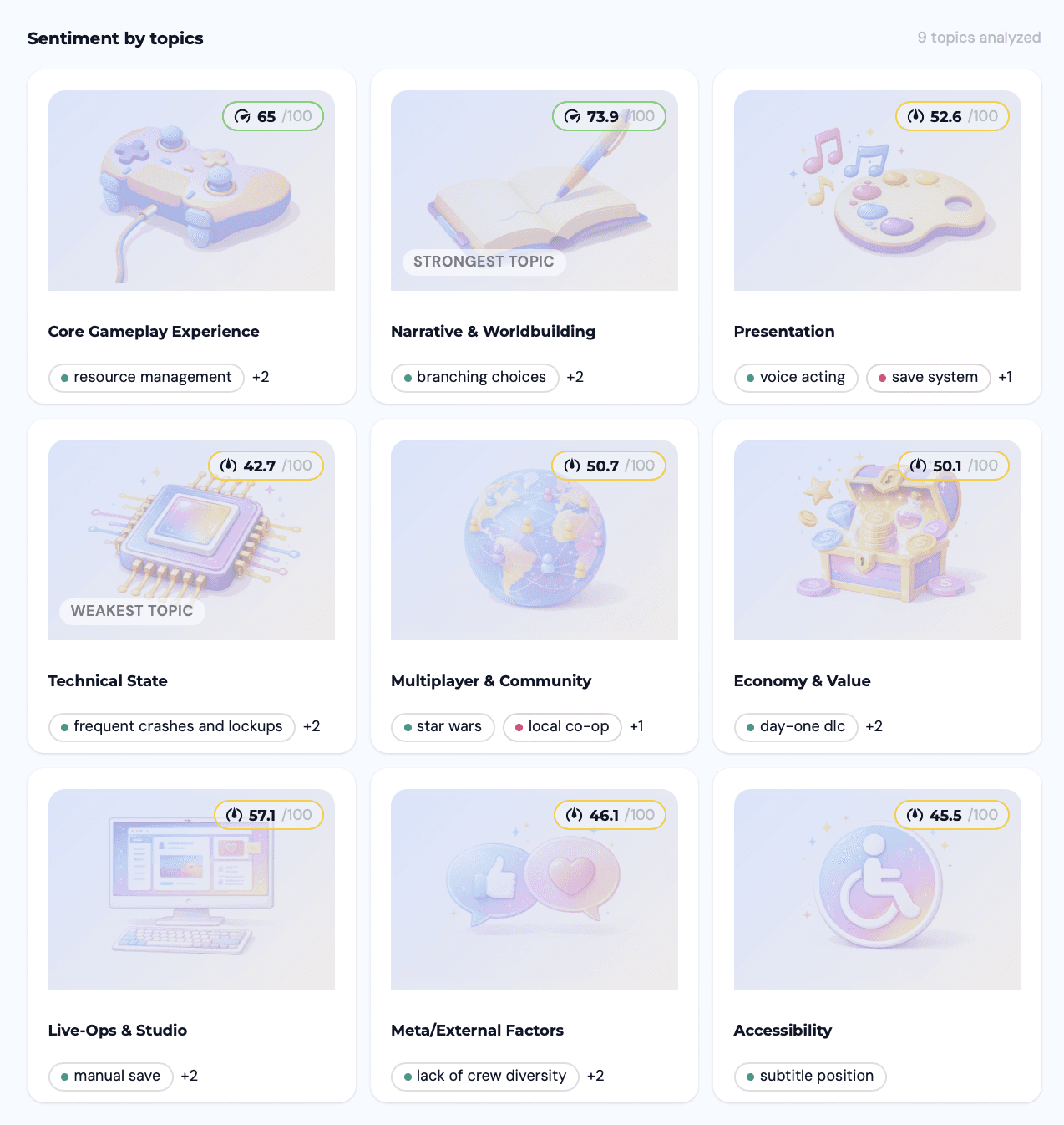 According to the Lumos data, the strongest positive sentiment isn’t for the mechanics. It’s for Narrative & Worldbuilding. Players aren't just "tolerating" the branching dialogue and the deep-lore dives; they are actively praising them. In an era where most gamers have the attention span of a goldfish after a double-shot espresso, Across the Unknown has managed to make "reading" the primary hook.