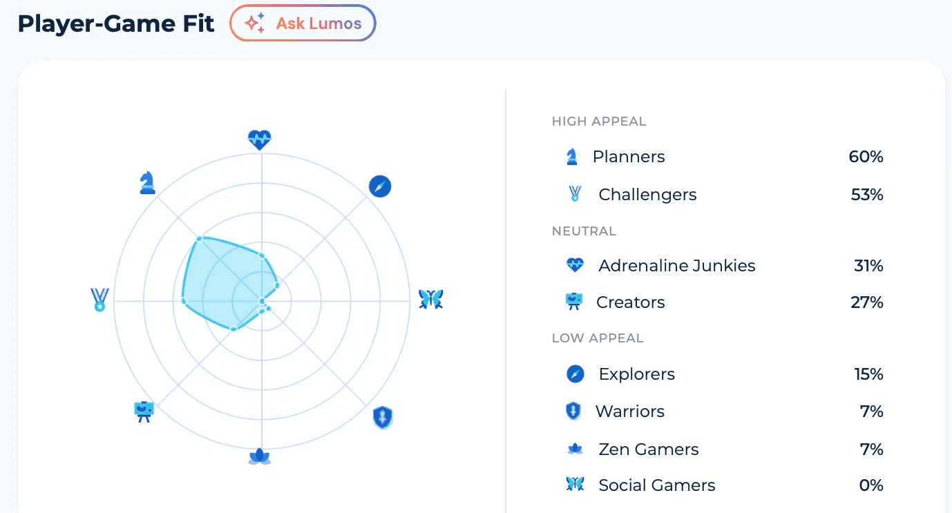 The player-game fit data is where the "why" becomes crystal clear. The game has a massive 60% appeal among Planners and 53% among Challengers. These are the "measure twice, cut once" gamers. They want systems with consequences. They want to weigh the outcome of a diplomatic treaty like they’re playing a high-stakes game of 4D chess.
