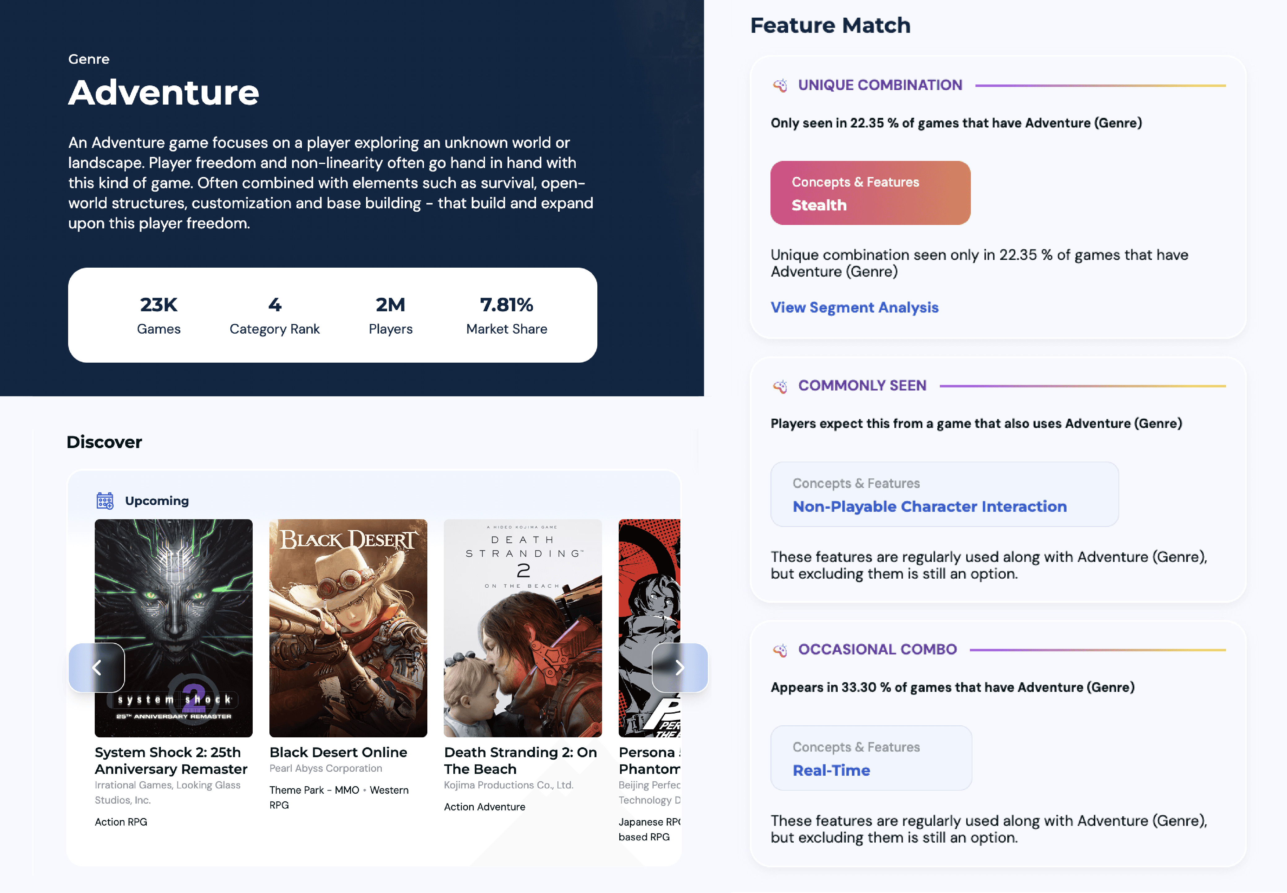 Feature Popularity Analysis: Compare features across successful titles to find high-impact differentiators.